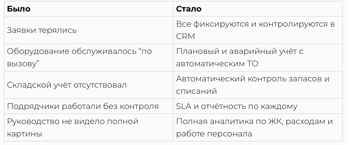- Заявки перестали теряться — все фиксируются в CRM.